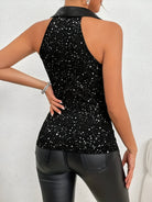شارلين | توب بدون أكمام بياقة بدلة – تأثير لامع وأسلوب أنيق