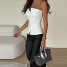 - قصّة بدون حمالات لمظهر بسيط وأنيق.