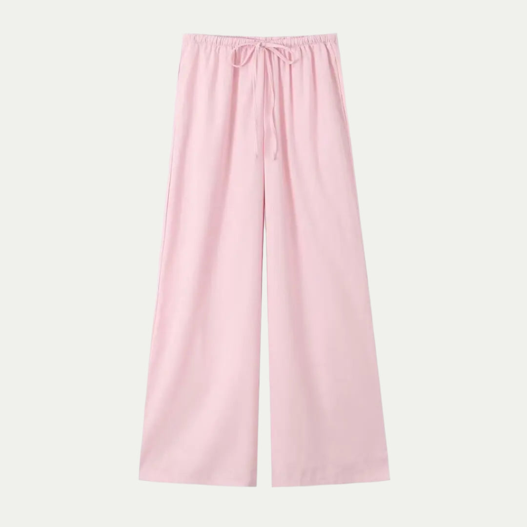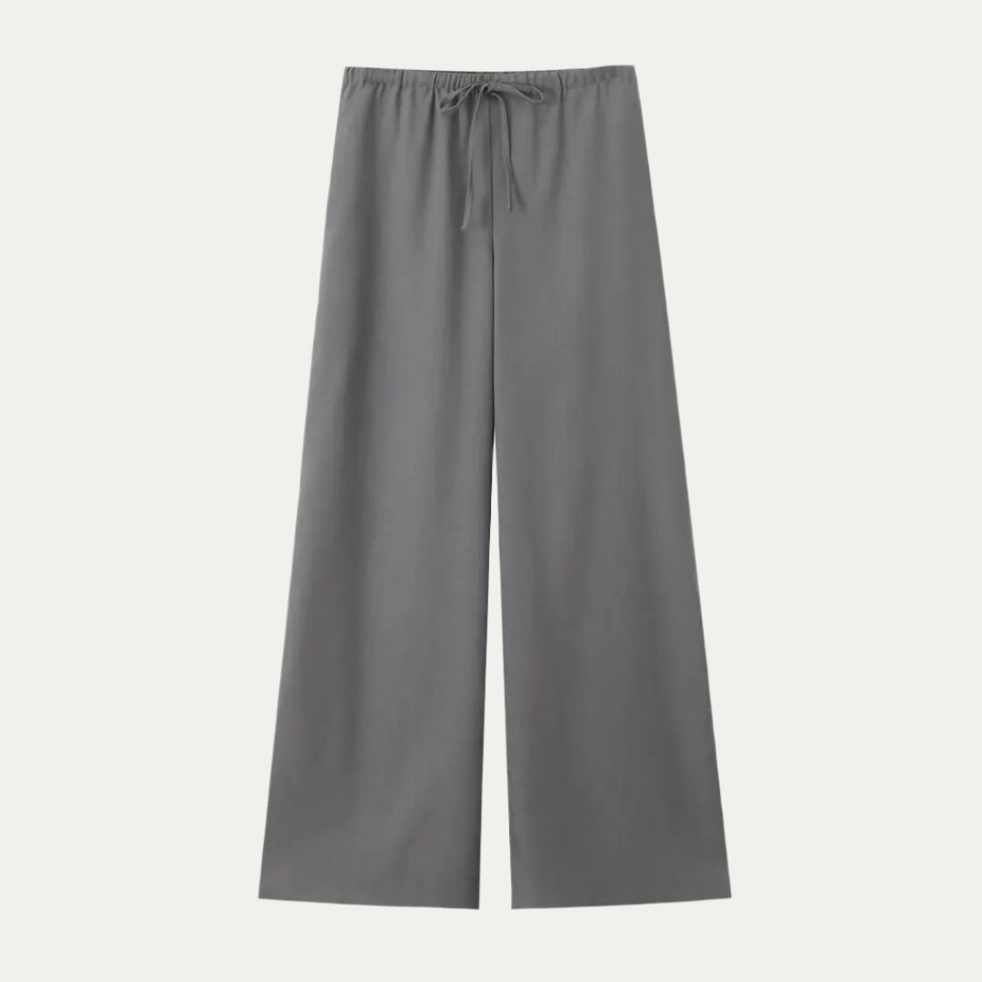 • سروال عالي الخصر بأرجل واسعة لإطلالة رشيقة.