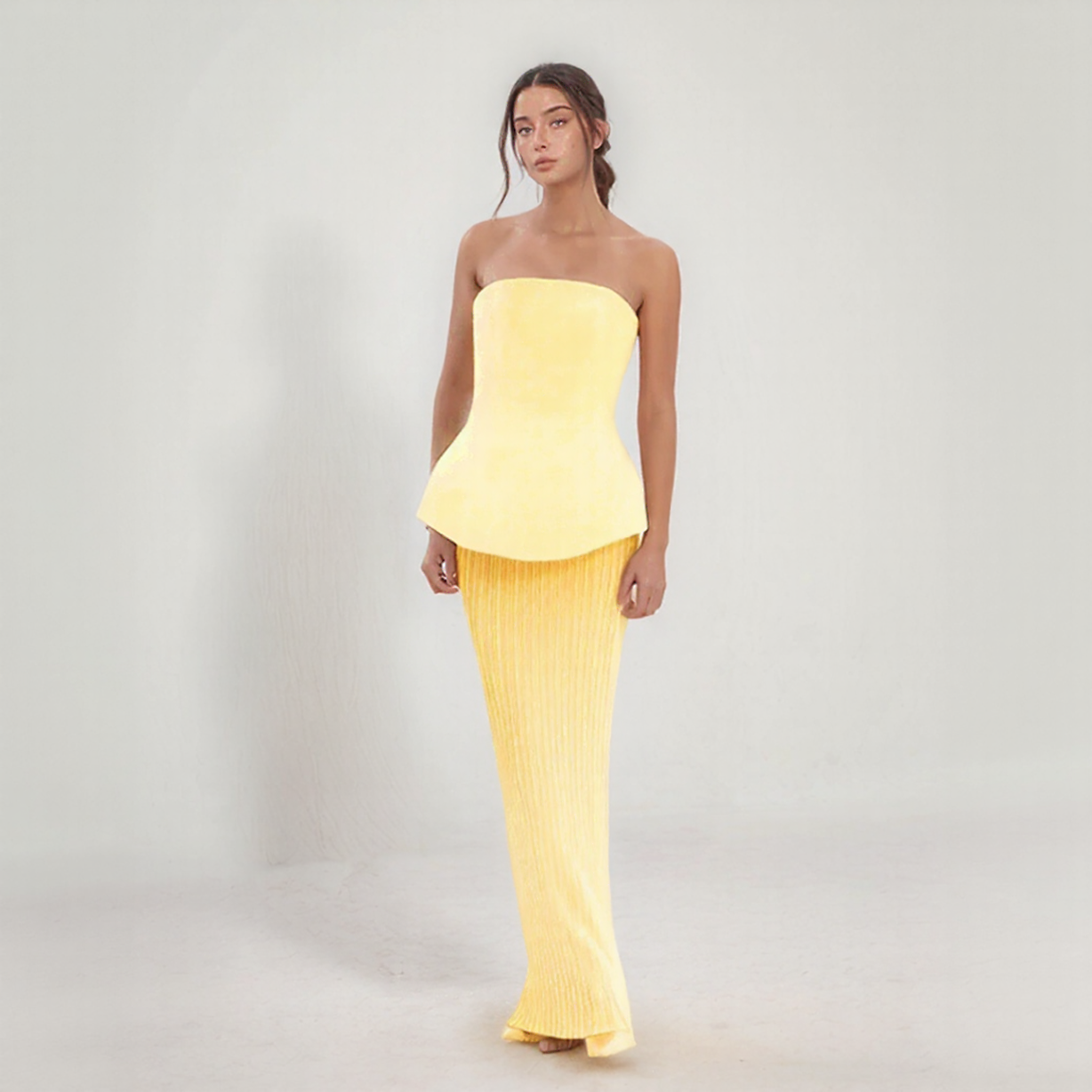 Queena | Ensemble Tendance – Crop Top Bandeau og Lang Høj Talje Nederdel