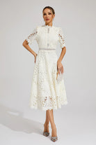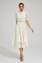 Αυτό το φόρεμα διαθέτει λεπτές λεπτομέρειες και μια κολακευτική μεσαία σιλουέτα. Ιδανικό για γάμους, κήπους ή οικείες βραδιές. Ενσαρκώνει την ουσία της διακριτικής γοητείας.