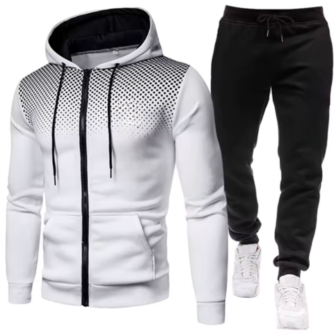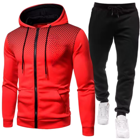Este chándal combina una chaqueta con cremallera y capucha con un pantalón jogger para crear un conjunto coordinado fácil de llevar a diario. Los patrones degradados en la parte superior aportan un toque gráfico que se nota de inmediato. El pantalón de cintura ajustable permite adaptar el conjunto tanto para momentos de relajación como para salidas activas.