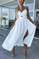 Tämä midimekko korostaa siluettia sen istuvan leikkauksen ja hienostuneen kaula-aukon ansiosta. Saatavilla useissa väreissä, se sopii sekä erityisiin tilaisuuksiin että arjen hetkiin. Sen laadukas kangas takaa mukavuuden ja kestävyyden, samalla kun se on helppohoitoinen.