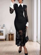 הנָּה | שמלת מידי שיק עם צווארון מנוגד ושרוולים ארוכים