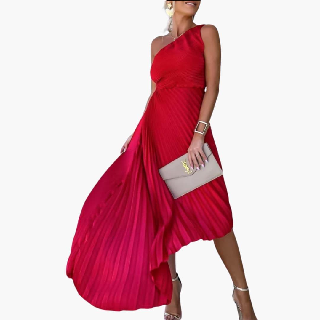 שמלות ערב אלגנטיות זו מקסימה עם הכתף הייחודית שלה והחתך האסימטרי המעודן. היא מחבקת בצורה מושלמת את הקווים ליצירת סילואט מענג. פריט אידיאלי כדי לזרוח באירועים האלגנטיים ביותר שלכם.