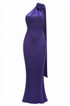 Questo abito lungo è progettato per valorizzare la silhouette con grazia. Il suo design asimmetrico abbinato a una Rosa in rilievo conferisce un aspetto sofisticato e contemporaneo. Ideale per serate eleganti e occasioni formali.