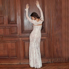 Ninon | Abito Lungo In Pizzo Con Corda Di Stringimento E Sciarpa