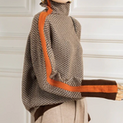 このセーターは、洗練されたChevronパターンによって構造的なラインを際立たせています。袖の沿ったコントラストバンドが、控えめながらも視覚的なアクセントを加えています。わずかにゆったりしたカットは、日常のコーディネートやよりフォーマルなスタイルを簡単に組み合わせることができます。