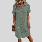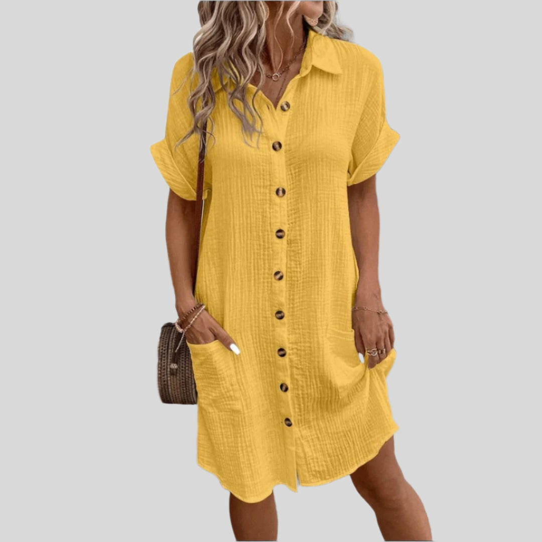 このボタン付きシャツドレスは、ゆったりとした快適なシルエットを提供します。複数のカラーで利用可能で、あらゆる場面に対応します。その時代を超えたデザインは、あなたのワードローブの必需品です。