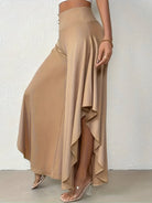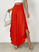 このパンツは流れるようなアシンメトリーなカットが特徴で、あなたのコーディネートに個性を与えます。ハイウエストはシルエットを引き締め、軽やかな生地が一日中快適な感覚を提供します。カジュアルでありながら洗練されたルックにぴったりで、街でもバカンスでも使えます。