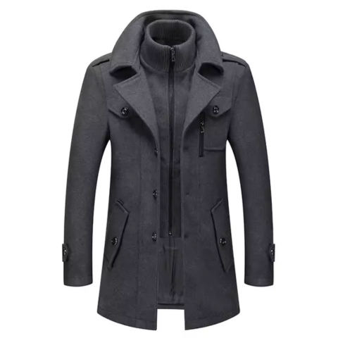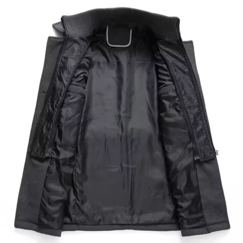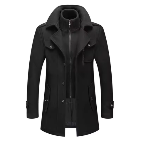 セバスチャン | メンズダブル厚コート — ダブルファスナーと前ボタン