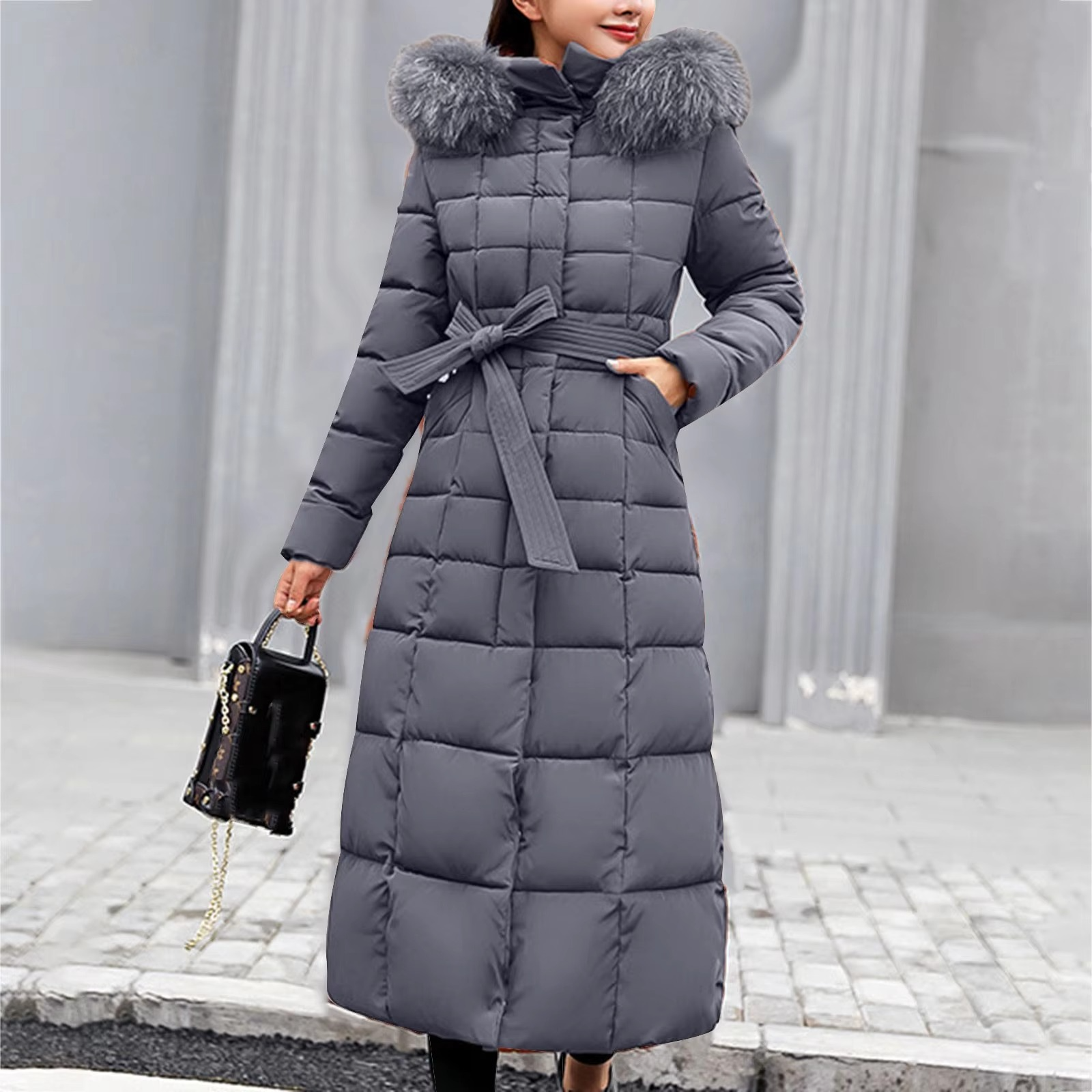 - Hood lined with faux fur for an elegant style.
