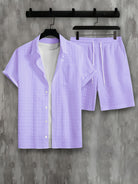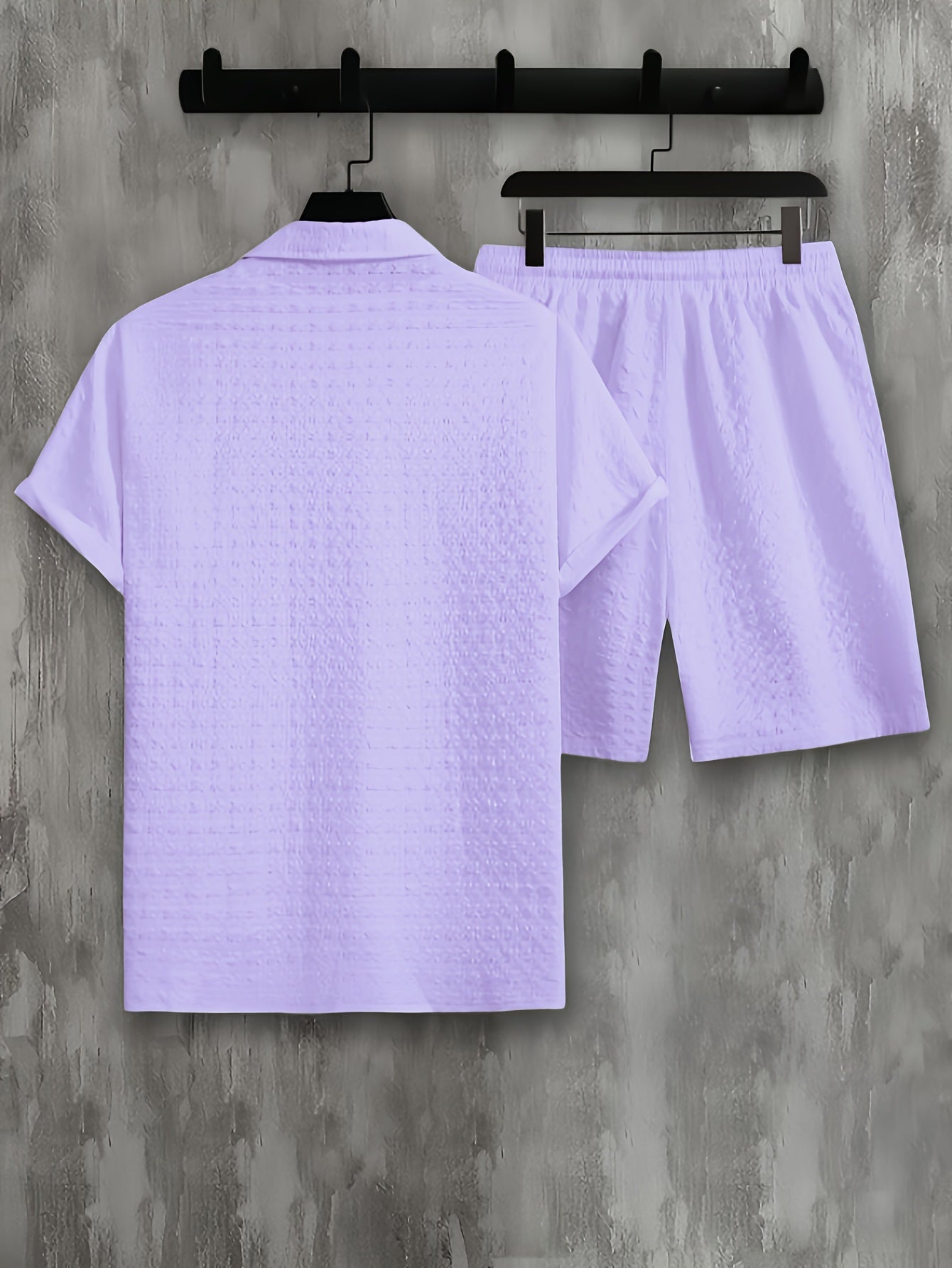Dette settet kombinerer en kortermet skjorte med knappestolpe og shorts med justerbar snøring. Det tilbyr en avslappet passform for optimal komfort. Ideelt for ulike anledninger, det forener stil og praktisk.