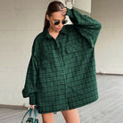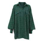 Dit oversized shirt heeft een gedurfde ruitpatroon en een afhangende schouder voor een moderne look. De volumineuze mouwen met manchetten voegen een vrouwelijke touch toe. Gemaakt van een mix van comfortabele stoffen, is het ideaal voor alle seizoenen.