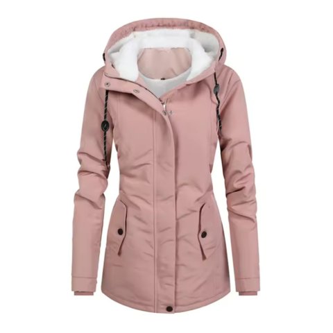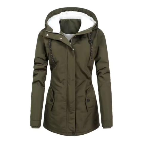 Sania | Long Women's Jacket — Hooded with Drawstring and Buttoned Pockets